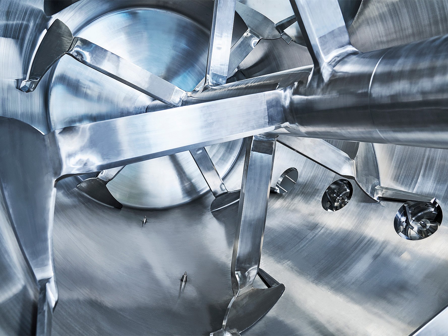 Our facility enables comprehensive testing of process steps such as mixing, conching, reacting, drying, wet grinding, and melting, both in batch and continuous processes. We conduct tests at temperatures up to 180°C (heating with pressurized water or steam) and pressures from vacuum to 10 bar, with all important parameters being electronically recorded and documented.