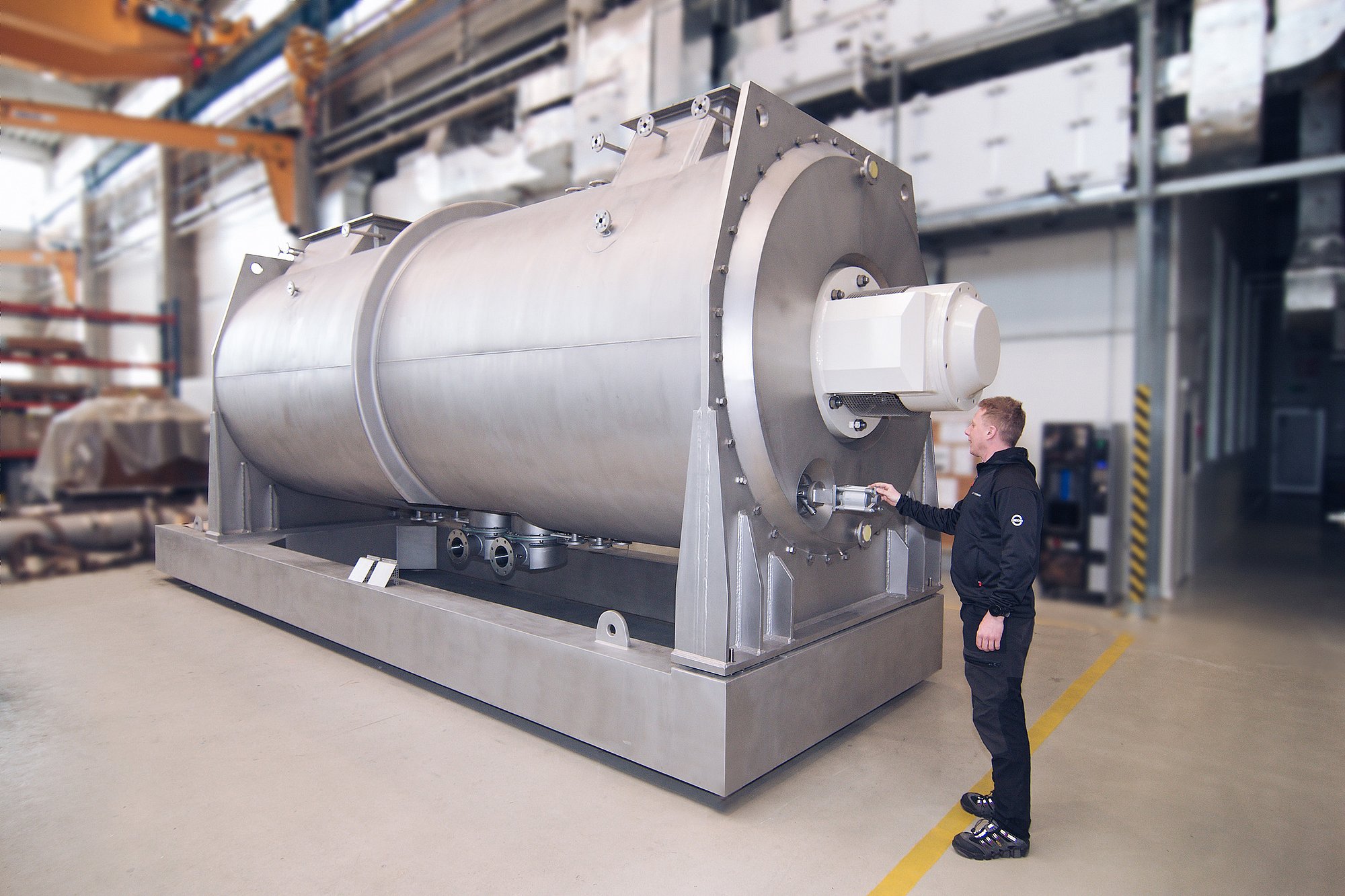 Die Maschinen sind aufgrund ihrer zylindrischen Bauweise und einem Wandspiel von nur 3 mm (bei einseitig gelagerten Maschinen zusätzlich mit großer Inspektionstür) auch in puncto Hygiene und Reinigungseffizienz überzeugend.