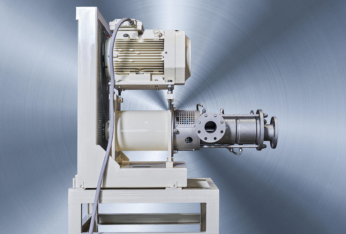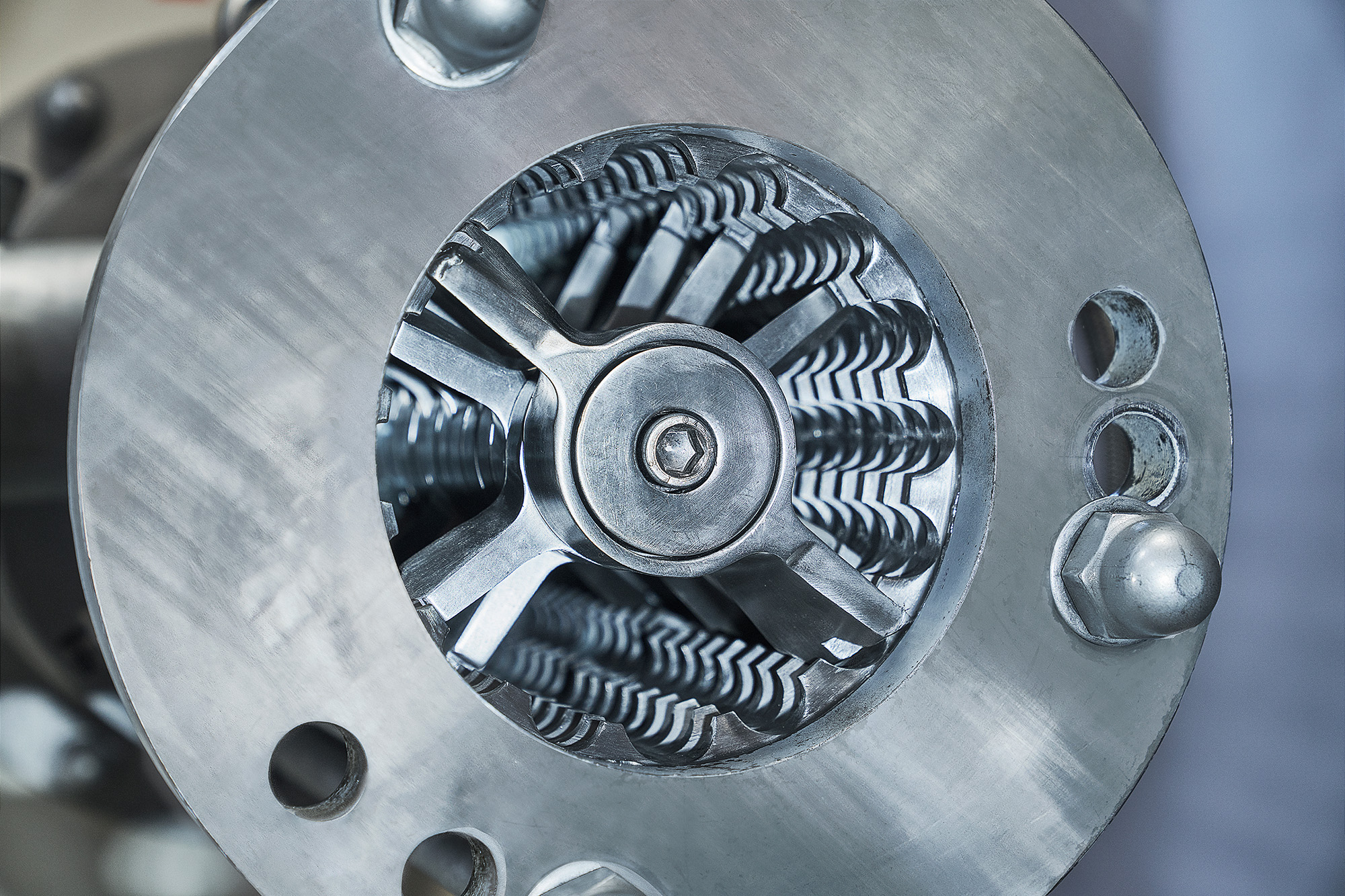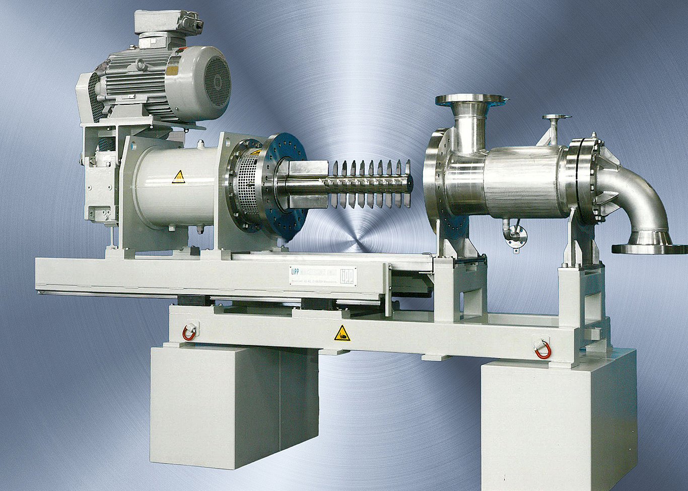 Dieser kontinuierlich arbeitende Mischer mit axialer Zwangsförderung vereint die Funktionen eines Intensiv-Mischers, Rotor-Stator-Scherkopfes und einer Pumpe, ideal zum Desagglomerieren, Dispergieren und Aufschließen.