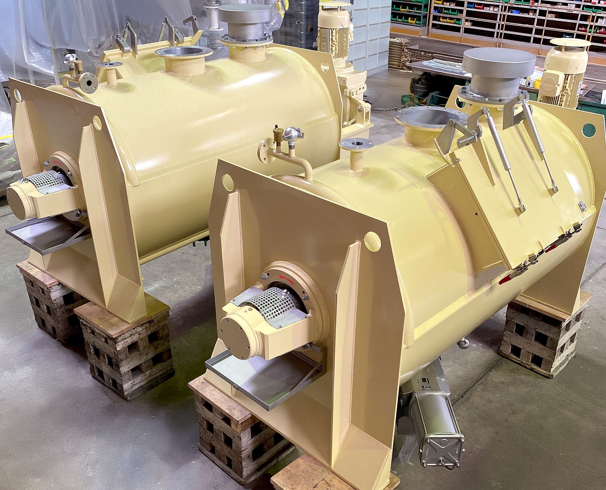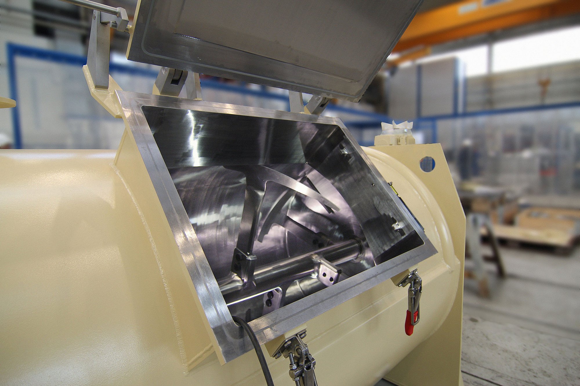 Unsere Mischer verfügen über eine horizontale, zylindrische Mischtrommel mit zentraler Mischwelle und anwendungsspezifisch angeordneten Mischelementen für eine optimale, energieeffiziente Durchmischung.